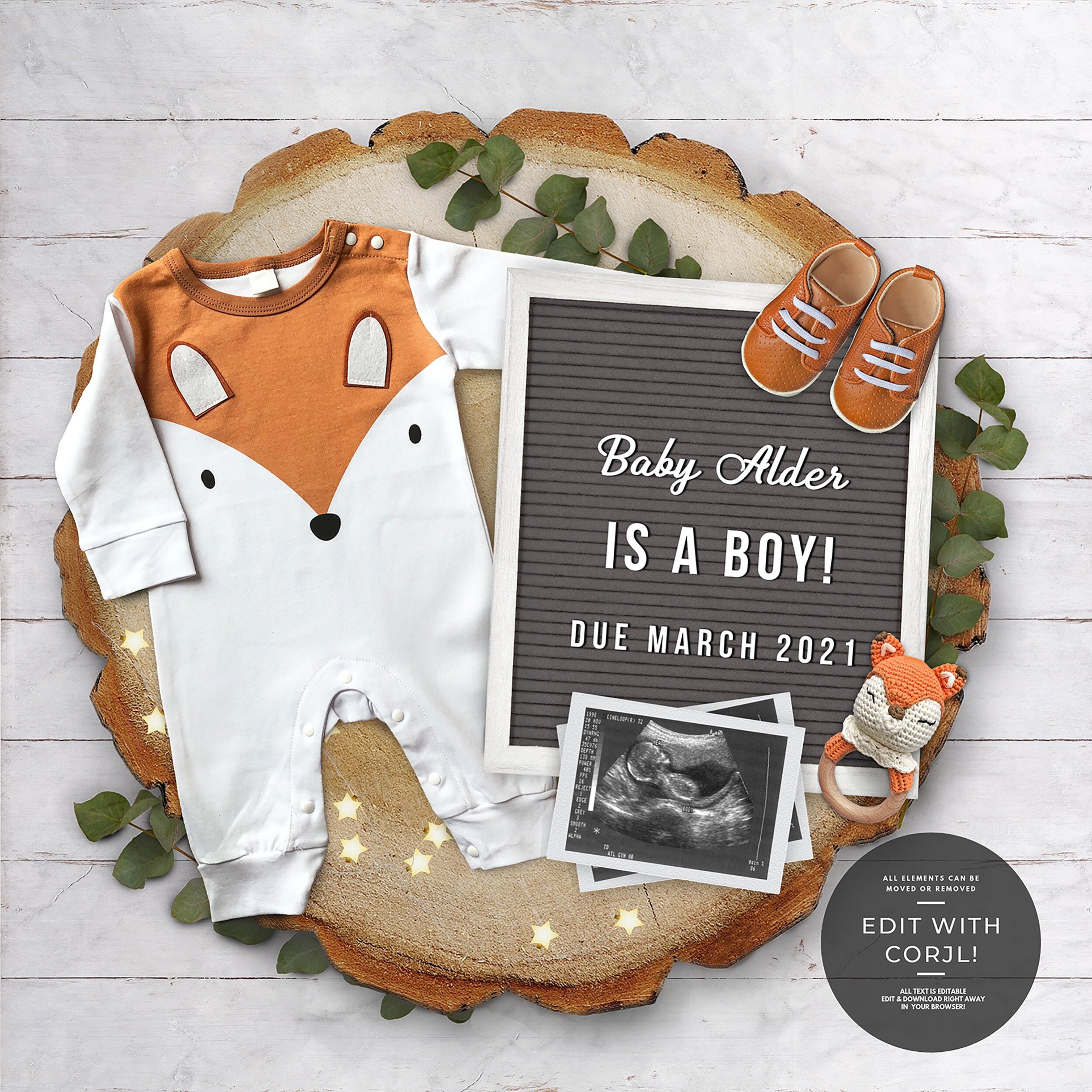 It S A Boy Editable Woodland Theme Pregnancy Announcement Digital Gender Reveal Announcement Social Media Pregnancy Announcement
